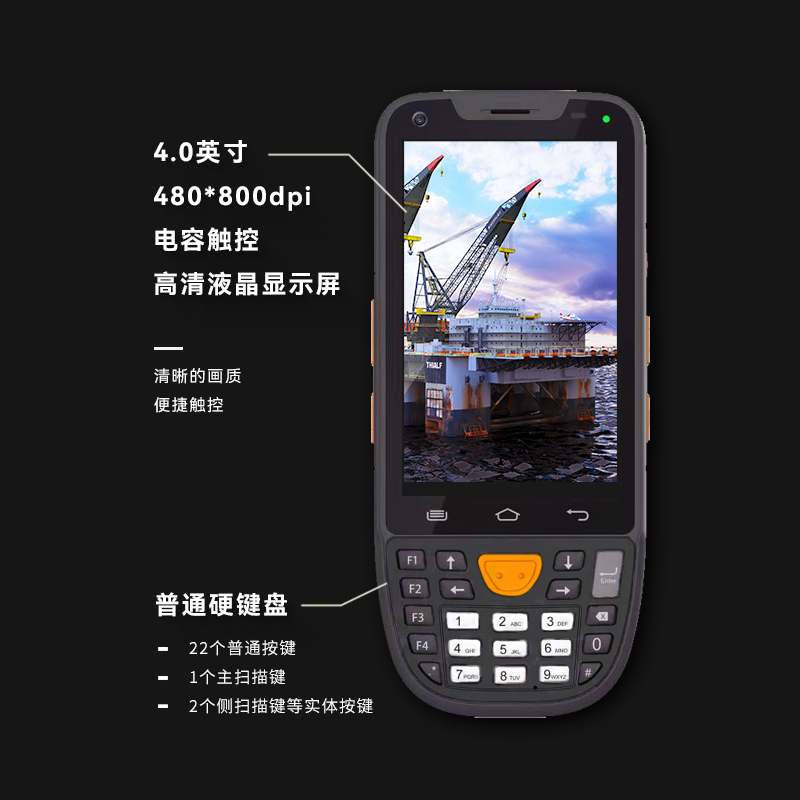 • Изысканный и компактный, удобный для хранения и переноски, емкостный сенсорный экран промышленного класса с разрешением 4,0 дюйма (480*800), поддерживает мультитач, обеспечивает хорошее визуальное последствия, и поддерживает чтение на открытом воздухе при солнечном свете.