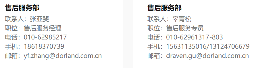 Мы искренне приветствуем вас, чтобы связаться с нами и принять участие в наших послепродажных анкетах для оценки наших услуг, и мы внесем соответствующие улучшения на основе ваших оценок и предложений. ДОРЛАНД будет cпостоянно повышать уровень обслуживания, а также ваше удовлетворение всегда будет наше преследование.